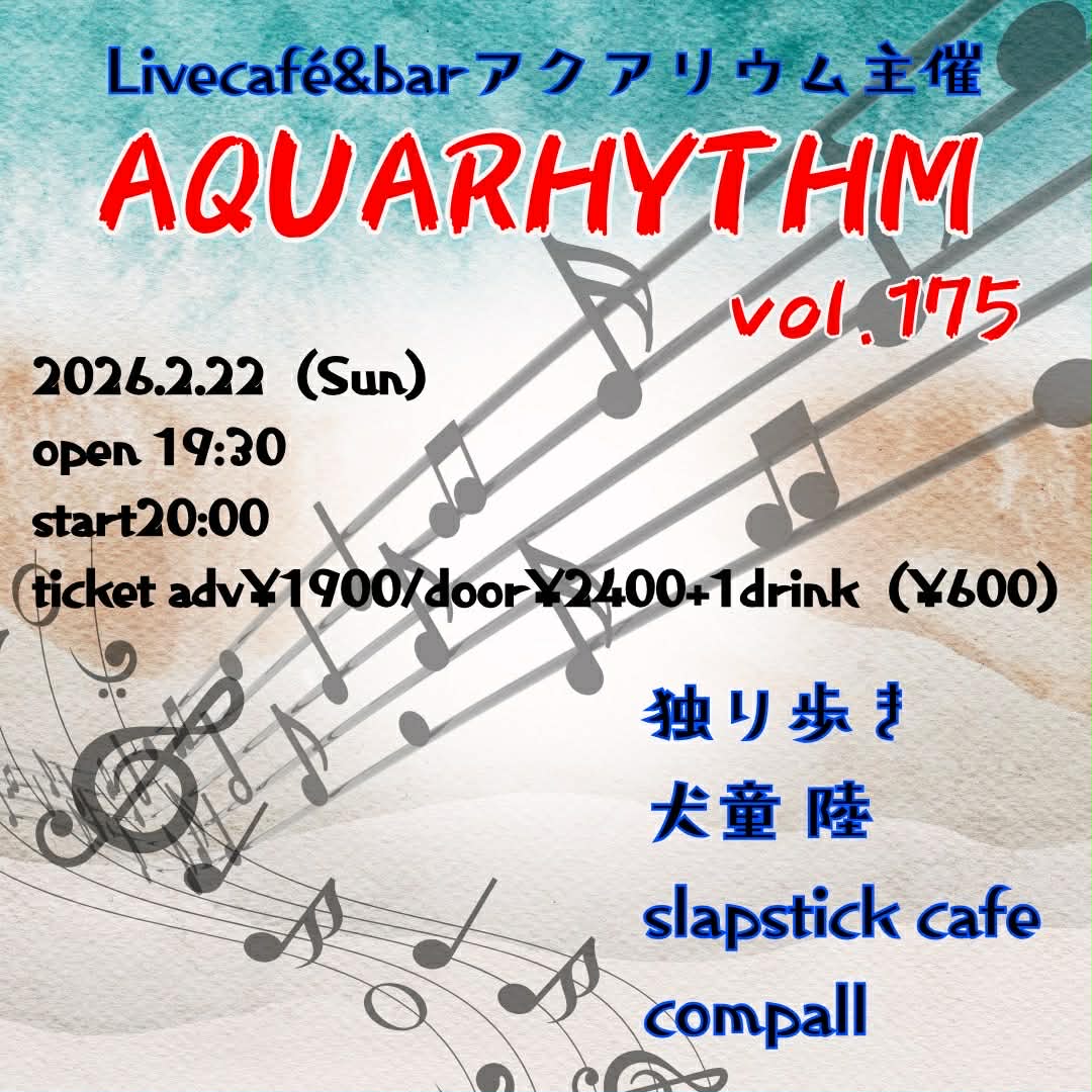 **LIVE!**2026/02/22所属バンド、スラップスティック・カフェが大名アクアリウムに登場!!(詳細は下記フライヤーを!)