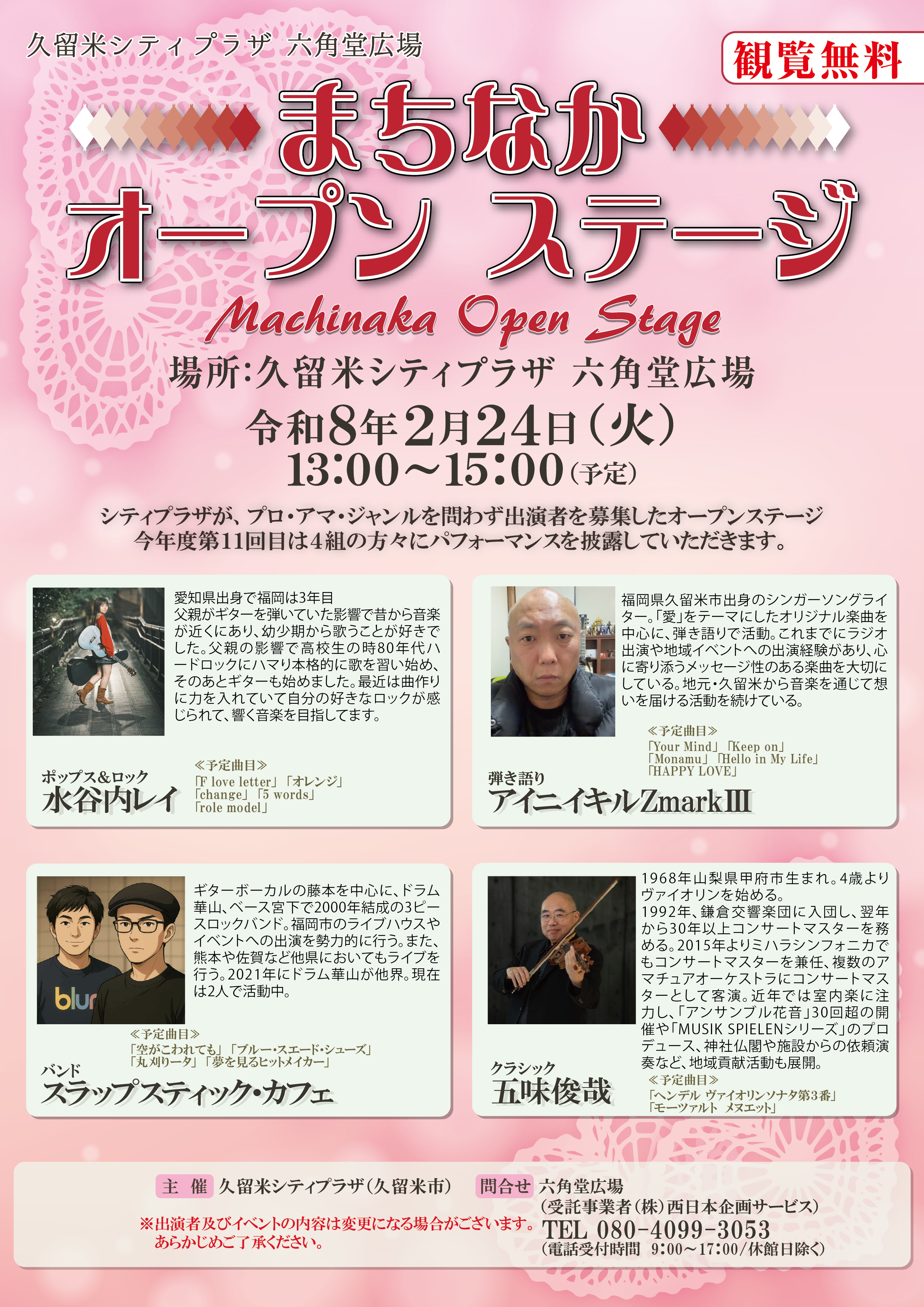 **LIVE!**2026/02/24所属バンド、スラップスティック・カフェが久留米六角堂広場に登場!!(詳細は下記フライヤーを!)